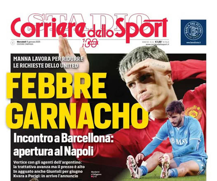 本周意媒报道称,那不勒斯体育总监乔瓦尼·曼纳周一晚抵达巴塞罗那,与加纳乔的经纪人会面,讨论可能的转会事宜。据说,他们就这位阿根廷球星加盟的意愿以及他的工资要求进行了会谈。