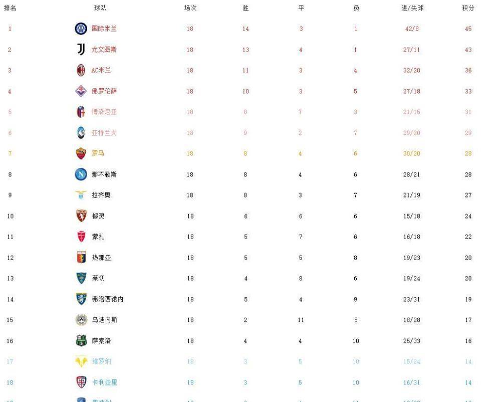 意甲直播,意甲赛程,意甲积分榜,尤文图斯直播,意甲比分预测/面向中文球迷的意甲资讯平台,涵盖2025赛季完整赛程、免费高清直播入口、积分榜更新与竞彩波胆预测,聚焦尤文、国米、米兰三大豪门赛事。北京时间12月31日凌晨,意甲第18轮比赛继续进行。本轮焦点战,尤文主场1球击败罗马,继续追赶积分榜榜首国米。 AC米兰也以一场胜利结束了2023年,锁定了积分榜第三位。