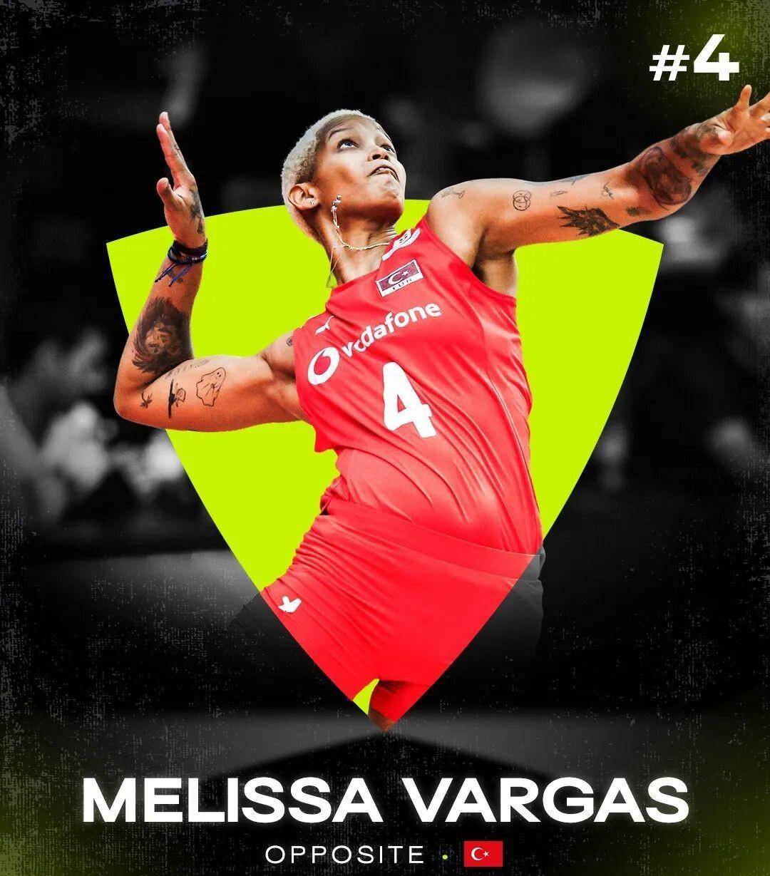 第4名是梅丽莎·瓦尔加斯(Melissa Vargas)。自从她从VNL第二周回归后,就立刻掌控了比赛的节奏,到了世锦赛更是表现抢眼,一骑绝尘。她不仅拿到了最佳接应、得分王,还拿了发球王,三大荣誉全包圆了。作为土耳其女排的进攻核心,她用实力证明,她是2025年最让人放心的火力点之一。